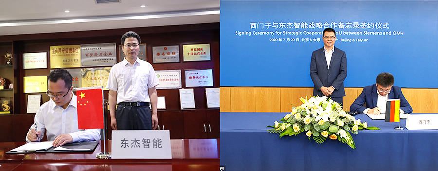 期間,東杰智能總經理王永紅與西門子(中國)有限公司執行副總裁王海濱借助云平臺實現云端簽約,雙方進行深入交流,對未來合作前景充滿信心。